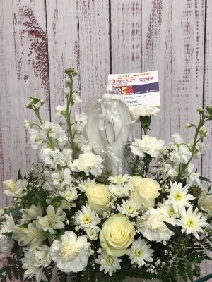 I love the arrangement i'm happy that they will have a little keepsake of the angel.