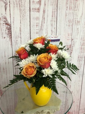 Not happy with the arrangement. This is nothing like the picture online of what I ordered. This is even after I called and they worked on it more. It should be vibrant and bright; this is just drab and gloomy looking.