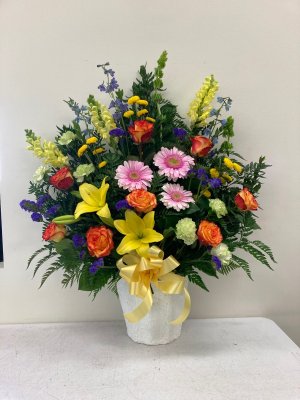 We are so pleased with the beautiful planter Flower Patch in Bountiful created and delivered for us! It looked exactly like the picture, but even better! It was large, full, nicely arranged, and fresh. Their customer service was so kind and went out of their way to please. I was “last minute” getting my order in and they still delivered in time for a morning funeral. I'm so grateful! Definitely will use them again.