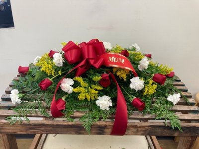 Magnificent arrangement! It exhibits the talent and quality you have always provided through the years. And the photo, curtious genius! Thanks again to the Flower Patch Team for another Merry Christmas!