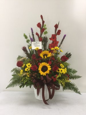 Getting an approximate measurement of the arrangement would help (width and height). Otherwise, getting a picture of the finished arrangement was really nice. It looked exactly like that when we saw it in person.