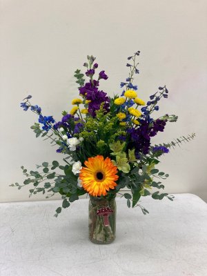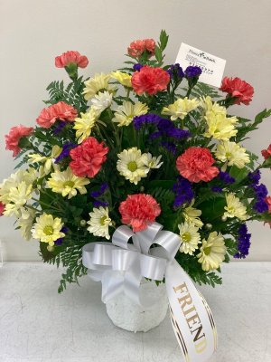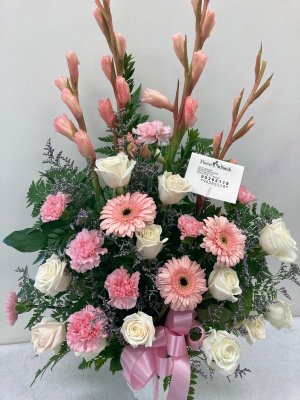 When I opened this picture I bust into tears. This is an absolutely, gorgeous piece of art. Bob spent many years in the military and was very patriotic- I know he's in Heaven now admiring this wonderful, beautiful arrangement. Thank you to the artist who created it. I will never buy flowers from anyone else. Thank you for your kindness and God Bless you!ππΊπΈβ€οΈ