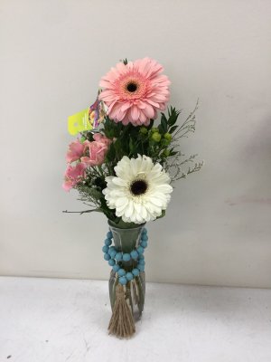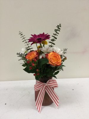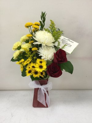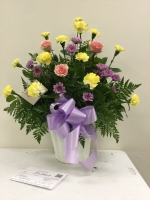 Very pretty with lots of flowers! My sister will love it! I'm so glad that they sent me a picture of it. Otherwise I wouldn't have known how beautiful the arrangement was. Thank you very much.