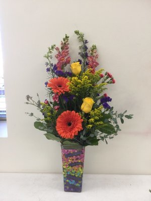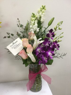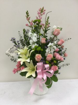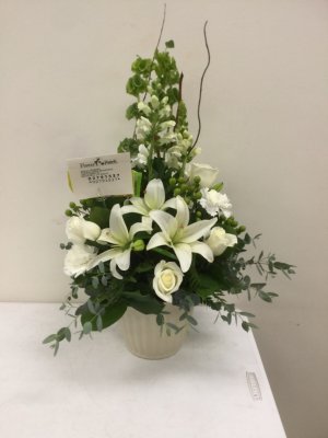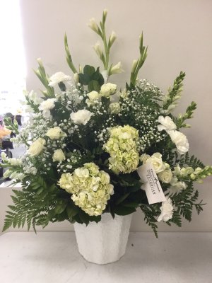 Beautiful sympathy arrangement. I enjoyed receiving a picture. The family of the recipient messaged us back and loved the arrangement as well.