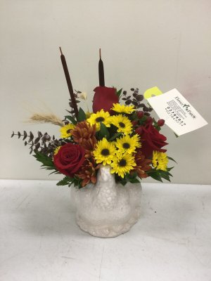 The arrangement is adorable! Just what I imagined! I appreciate the photo! Emily, who helped me place my order, was kind, knowledgeable and courteous! Thank you so much! 🦃🍁