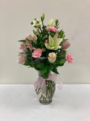 Thank you for the beautiful arrangement! Very nice and pretty flowers. Thank you for the quick response and it was easy ordering online .