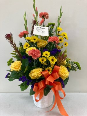 Beautiful arrangement! It was just what we had hoped for. Thank you for sending a photo as well and delivering it on time. We were very pleased.