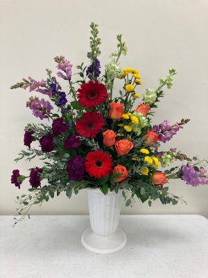 I ordered my arrangement online very easy. They actually sent me a picture when it was done to show me what it looked like. So when I got to funeral, I immediately knew which flowers were from us.They were beautiful!