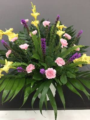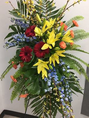The florist did a great job with the arrangement ... only disappointment was that they didn't have the cane that is usually used. Regardless they did a great job improvising and with communicating the issue and possible options. Partially my fault because