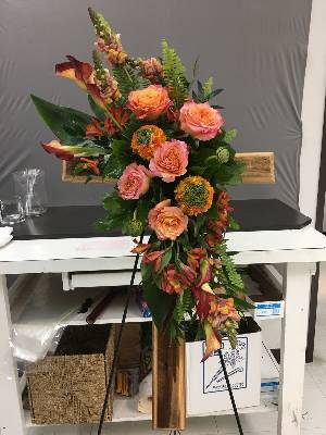 Very pretty... not pleased with all the color in the bow for a memorial service... but in general it is lovely!