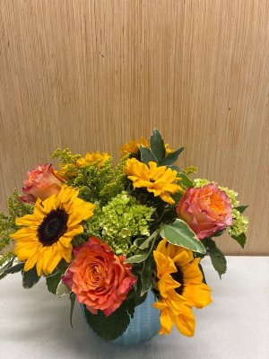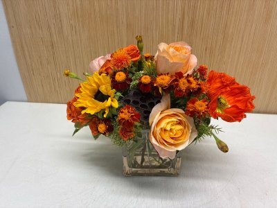 This arrangement is lively! Seasonally appropriate, fresh and decorative!