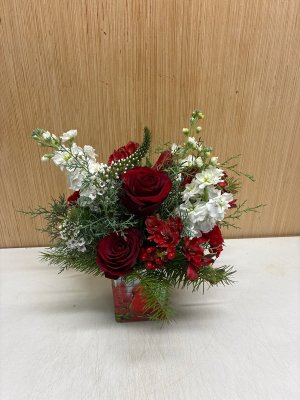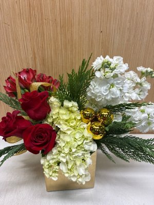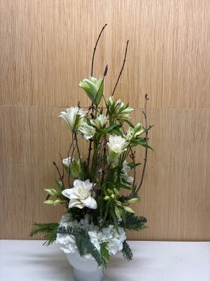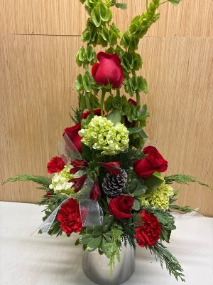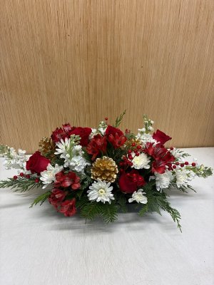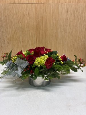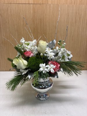 First, the lady who took my order was patient and let me take time to decide. And so friendly. Customer service is alive and well at Breen's! My cousin Kathy seemed so please with this festive arrangement which was perefect for Christmas and through to New Year's! Many thanks