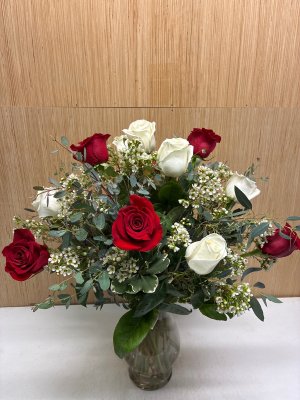 It looks good! Is there red roses available and preferably a pink vase?
