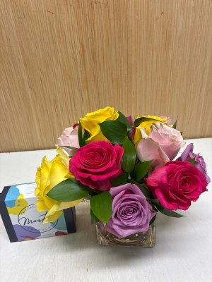 Beautiful arrangement! The roses are gorgeous! Very satisfied with it and Breen's.