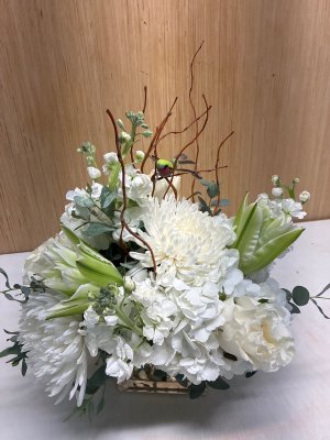 I asked for a green and white arrangement for a funeral. What I got was not even close to my request. I was ordering for a group so everyone was let down .