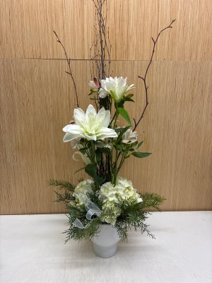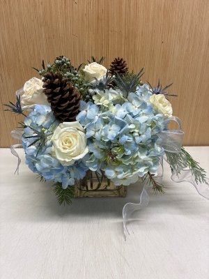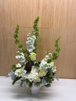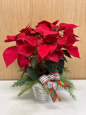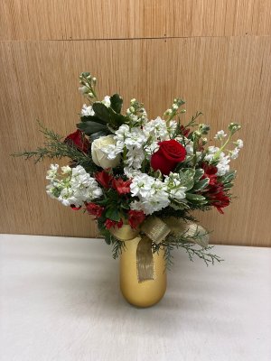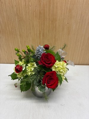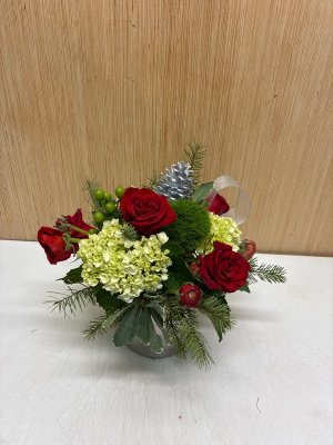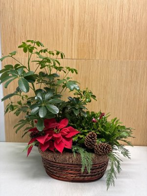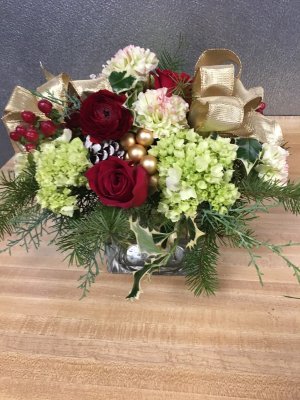 First, the lady who took my order was patient and let me take time to decide. And so friendly. Customer service is alive and well at Breen's! My cousin Kathy seemed so please with this festive arrangement which was perefect for Christmas and through to New Year's! Many thanks