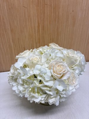Thank you! Could we have a shorter vase and one less hydrangea?