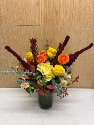 The arrangement is beautifully done! Thank you for making such a nice bouquet for my wife's birthday! Sending the photo was a plus since I am not there to see it in person. Thank you!!