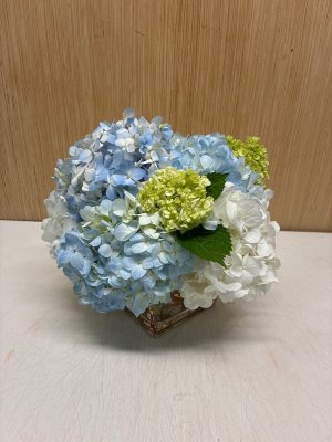 I was rather underwhelmed by this arrangement. It looks like more of a $40 bouquet rather than an $85 one. Additionally, there one not many new baby boy options with blue hues. Most are white. I would not select the "let florist choose" again option.