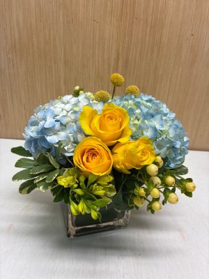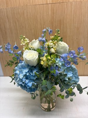 I was rather underwhelmed by this arrangement. It looks like more of a $40 bouquet rather than an $85 one. Additionally, there one not many new baby boy options with blue hues. Most are white. I would not select the "let florist choose" again option.