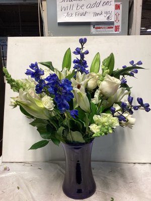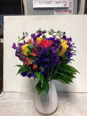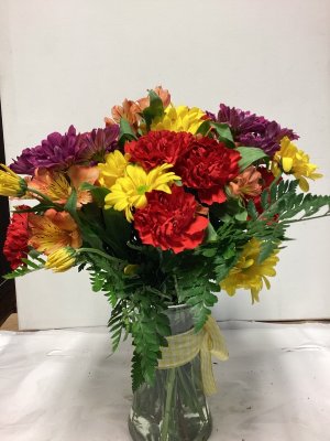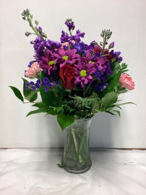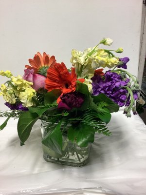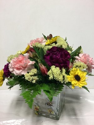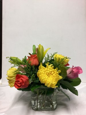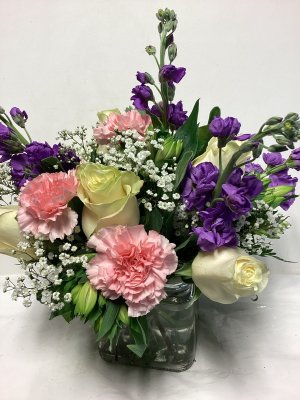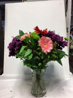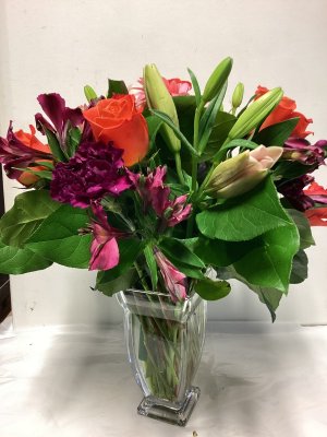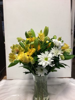 Lovely arrangement. Flowers are very fresh and smelled lovely.