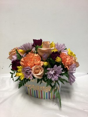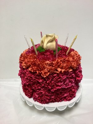 What a beautiful surprise! The birthday cake floral arrangement looks gorgeous and good enough to eat!