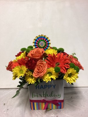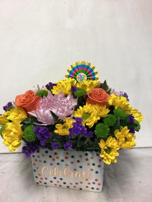 Stunning floral arrangement! Love all the color and variety of flowers. Thank you!