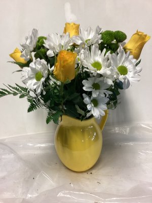 After numerous conversations with delivery person and conversation with the florist. I never received the delivery. The delivery person kept trying to deliver the flowers to the wrong address. So since even though I was told they would deliver to the right address noattempt to do so was made.