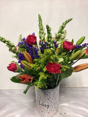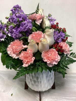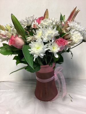 The flower arrangement was pretty but some of the flowers were wilted from the cold. The arrangement was not delivered until about 6 pm. It was a gift that was supposed to be delivered in the morning. So it was very disappointing and not good customer service. I would not recommend your florist