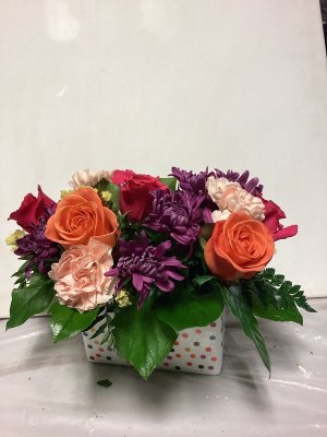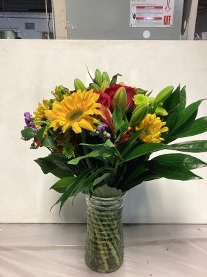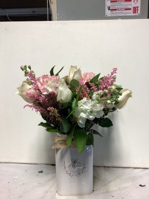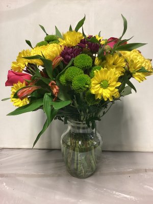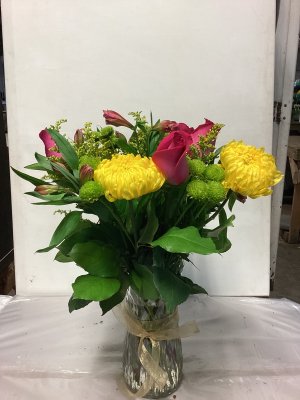 exactly as described the flower arrangement was beautiful and lasted more than a week