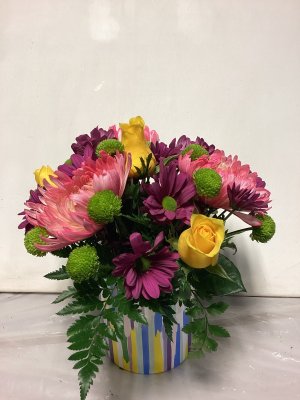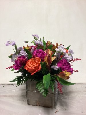 Beautiful arrangement! Colors were vibrant & gorgeous, flowers fresh - no wilting. What was received was even better than what the website example showed. Super happy!! Thank you!