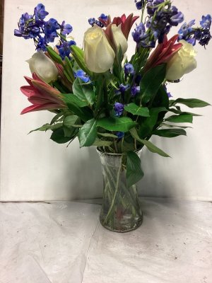 They were delivered a day late but the lilies are opening and beautiful!Love the greens and white.