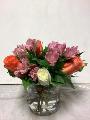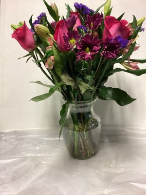 Your picture looks much better than what I received! Actually unrecognizable! Since you asked, I will say I was very disappointed with the condition and arrangement of flowers. Some flowers weren't cut at the stems for better water absorption thus some greenery looked wilted; a few buds hanging off stems; stock had some dead blooms hanging out of vase at strange angle (which is not in this picture!) perhaps from being stuffed into vase with seemingly no attention to spacing, height or aesthetics. The roses have opened nicely as have the alstroemeria once I cut them and removed dying or crushed blooms and rearranged their placement. I removed some greenery that was crammed into vase suffocating flowers and looking terrible. I don't know my friend's budget, but the flowers could have been placed in a smaller vase with filler and some greenery to highlight the flowers. Sorry for the criticism, but you asked. The picture you show is perfectly acceptable, but was not what I received.
