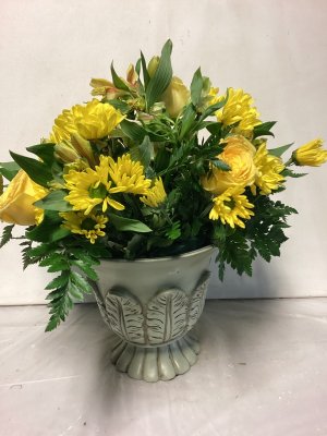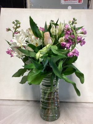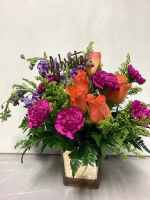 The flower arrangement is nice. However, they were supposed to be delivered on the 19th. Delivery person texted me at 4 PM “on their way” and would not respond to future texts with their ETA. Flowers were delivered after we had gone to bed and were left outside overnight. Luckily it didn't freeze so they were not completely ruined. Poor communication from delivery company, not responding to requests for status or ETA. The delivery info sent to the sender of the arrangement said they were delivered at 6:30 PM, which is not true.