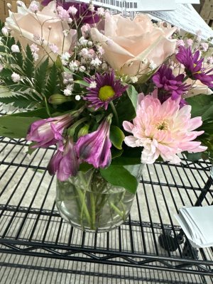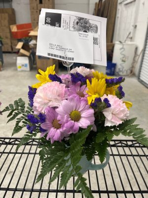 The flower arrangement was beautiful. It brightened my day.