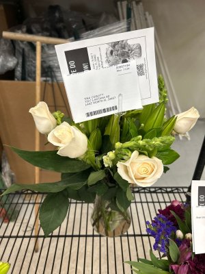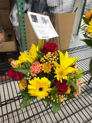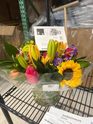 The flowers were fresh and absolutely gorgeous!! The delivery person was very polite, pleasant and upbeat.