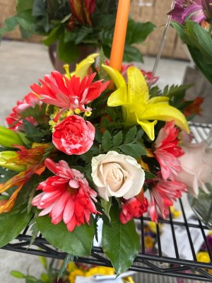 Mom's flowers are beautiful! Not only are they at the peak of healthy perfection, they are so nicely arranged together. Thank you for bringing a smile to her sweet face!