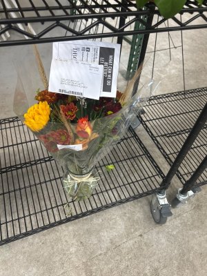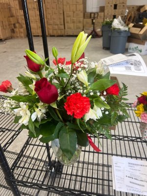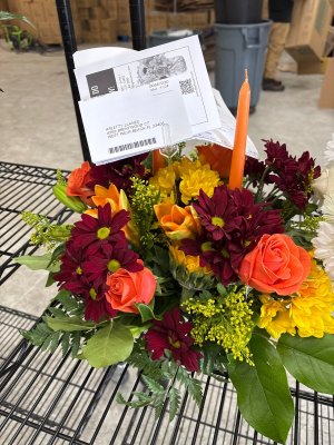 The flowers were spectacular! A beautiful arrangement with gorgeous roses complementing the lilies, mums, sunflowers, daisies...we love it!