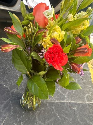 What a surprise to receive a vase of spectacular red roses and carnations from our dear friend. The gift for our special occasion in color and design reflected special details which meant a lot to us. Delivery was excellent.