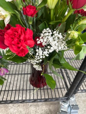 Beautiful arrangement! Everything was colorful and the blooms were perfect! They lasted for several days and as of this writing, they are still on display in my home. Love them!