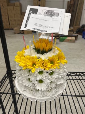 You failed to provide the requested Gift Note and added way too much advertisement material to arrangement. Flowers themselves were fine. The presentation and failed requests created the disappointment.