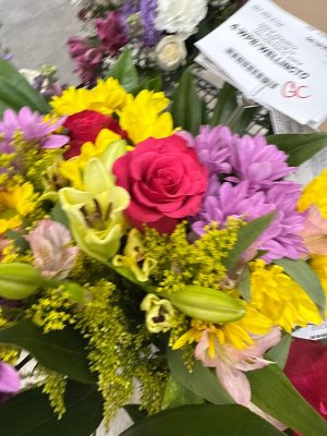 Beautiful. Very colorful. A nice birthday bouquet from my son and his family.