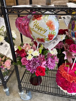 Was not impressed with the order since it looked nothing like the picture that was ordered. The flowers were wilted and several of the flowers were broken off the stems. The balloons shown in the picture were full size but what actually came were the small balloons. Not at all worth the money. Very disappointed.
