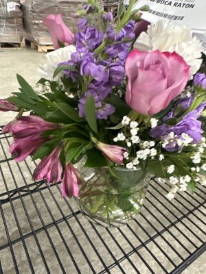Pretty arrangement however some flowers were wilted and not fresh looking