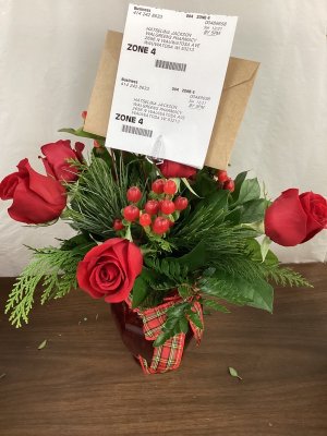 The delivery person was very friendly and had to wait out in the cold for me to get down from my apartment and answer the door. The arrangement was beautiful.