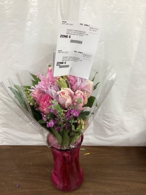 The flower arrangement was beautiful. The vibrant colors and fresh flowers are the perfect decor for the spring season. My home smells like a greenhouse.
