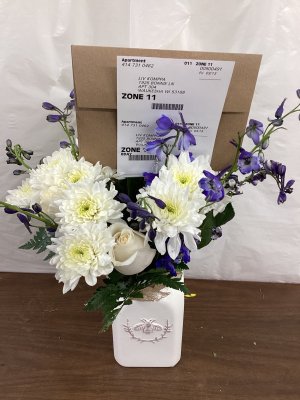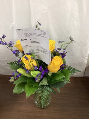 Lovely bouquet. Thank you 😁🌺 I did not receive a knock on the door. The vase was knocked over on my bench from the strong winds.