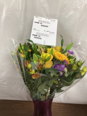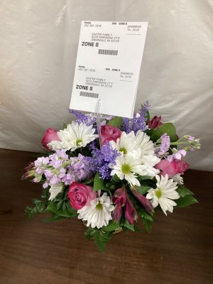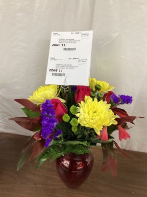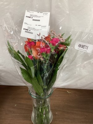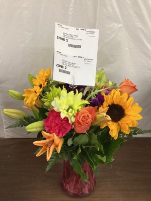 The arrangement was beautiful, however some of the flowers looked dead as they were leaning over. My office was not sure who the flowers were for has the deliver person walked out after placing them on the table. This lead to my manager reading my message in my card lol