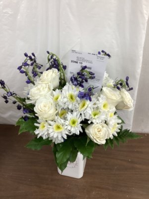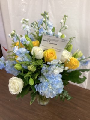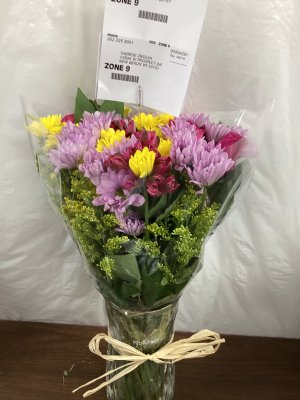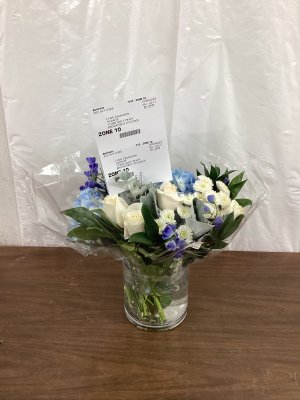 The flower arrangement was beautiful! Loved the colorful combination of roses, iris, lavender, daisies, and mumsπ The pitcher glass vase was very attractive! Loved itβ€οΈ