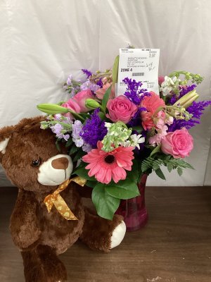 The flower arrangement is beautiful. I wasn't home on the day they tried to deliver the flowers so they came the next day which was later on a Saturday and five days in, they are still as beautiful as the day they were delivered. Great job.